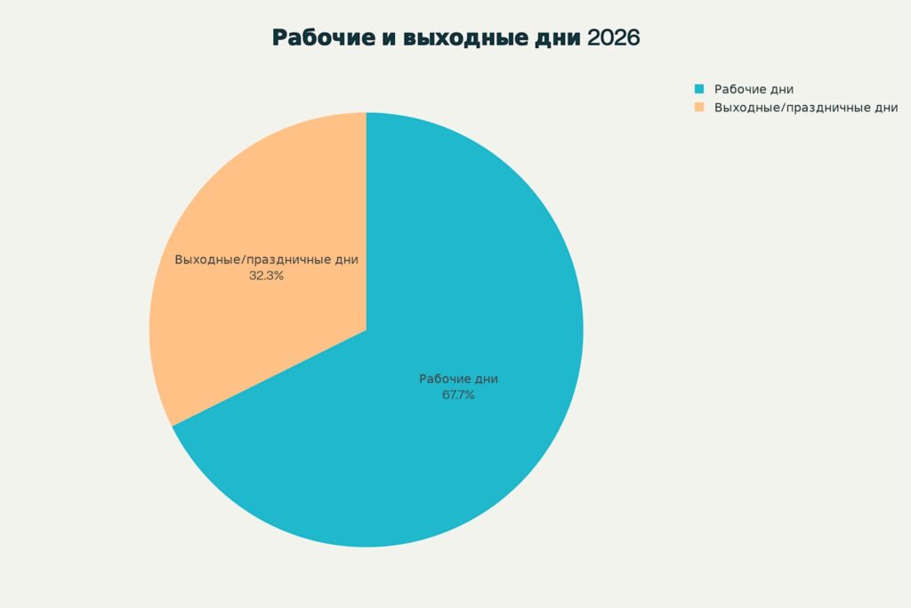 Соотношение рабочих и выходных дней в производственном календаре 2026 года.